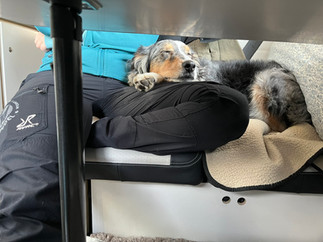 Vårt sista sök är för vår ”hemmadomare” Bibbi. Det känns fint att få avsluta hos henne. Bibbi är känd för att sätta väldigt svåra och kluriga gömmor och dela ut extremt få diplom/CERT, men det spelar ingen roll. Jag gillar verkligen Bibbi och här känner jag mig väldigt trygg. Nu har vi laddat om så många gånger så när vi pausat en stund i husbilen inför detta söket så känner jag hur himla trött jag är. Plupp hinner somna både under den korta lunchen och i pausen inför detta söket. Men när vi går mot väntplatsen så vaknar hon till igen och då vakar även jag till! Hon går in med samma energi och är precis lika sugen på att söka. Här har vi ett fordonssök och ett utesök. Vi börjar med fordonen och här har hon lite bråttom först. Men vi går tillbaka och hon hittar alla tre gömmorna på fordonen. I utesöket hittar hon en ganska enkel gömma. En ser jag att hon har, men kan inte riktigt lokalisera, efter ett tips så hittar hon en lite högre uppe på ett staket/metallgaller. Teamwork! Sen är där två ute som hon känner, men de reder vi inte ut. Hon fastnar lite nedanför den ena som är en hög. Sen finns det en till ute, där borta är vi, men jag upplever inte alls att hon känner den eller reagerar där. Jag tycker nog ändå att detta söket är vårt bästa sök. Det är lite coolt att det bara blev bättre o bättre under dagen, det känns som att vår fysträning har gett resultat.
